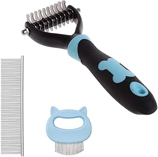 JVSISM Kit D'Outils Toilettage pour Animaux de Compagnie Peigne à 2 Faces pour Sous-Poils pour Chiens et Chats,Facile à Enlever les EnchevêTrements Tapis et L'ExcréTion, 3 PièCes SéRies
