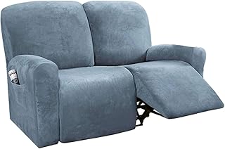 Elastique Canapé Relax Sofa Housse pour 1 2 3 Place Fauteuil Relax, Velours Housse De Canapé pour Fauteuil Relax Protège Canapé pour Les Chats Et Les Chiens-Bleu Gris-2 Place(6pièces)