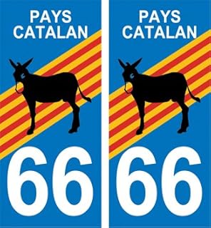 2 Autocollants Plaque Immatriculation Auto Département 66 Pyrénées Orientales Pays Catalan avec l'Ane Catalan