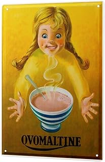 LEotiE SINCE 2004 Plaque en Métal Métallique Poster Mural tin Sign Rétro Wall Enregistrez-Vous Ovomaltine Enfant avec Chocolat Chaud Publicité Signes en Métal 20X30 cm