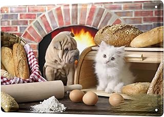 LEotiE SINCE 2004 Décor De Cuisine Plaque en Métal Métallique Poster Mural tin Sign Chiot Shar-Pei Cat Boulangerie 20X30 cm