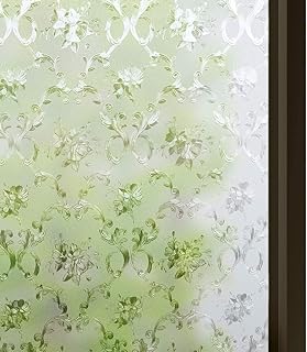rabbitgoo Film pour Vitre Electrostatique, Film Fenetre Anti Regard Non Adhésif à Motif de Fleur, Film Occultant Fenêtre Anti-UV Film décoratif Dépoli pour Salle de Bain Chambre Cuisine, 44.5x200cm