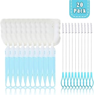 XGzhsa Brosse à bouteille, Brosse à paille, 10 brosses à bouteille éponge et 10 brosses à paille en acier inoxydable avec poignée pour le nettoyage de la tasse en verre de biberon de paille (bleu)