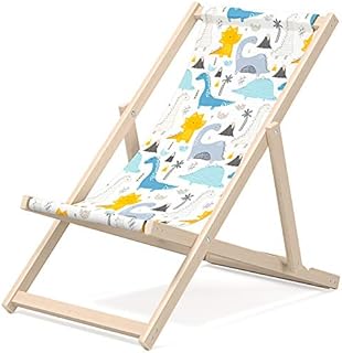 Novamat Chaise longue pour enfants en bois pliable Chaise longue de jardin Chaise longue de jardin Chaise longue de jardin Chaise longue de balcon bébé plage Motif dino