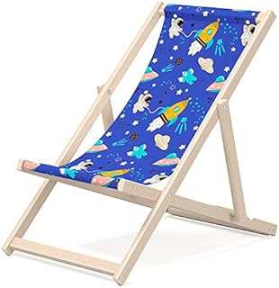 Novamat Chaise longue pour enfant en bois pliable Chaise longue de plage Chaise longue de jardin Chaise de soleil Balcon bébé plage Motif fusée