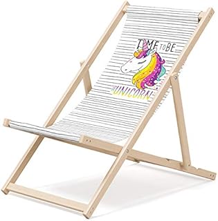 Novamat Chaise longue pour enfants en bois pliable Chaise longue de jardin Chaise longue de jardin Chaise longue de jardin Chaise longue de balcon bébé plage Motif licorne