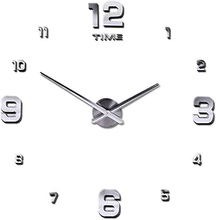 Netmetoo 3D Horloge Murale Grande Moderne DIY Home Decor Autocollant sans Cadre pour Le Salon Chambre à Coucher Bureau Barre argenté