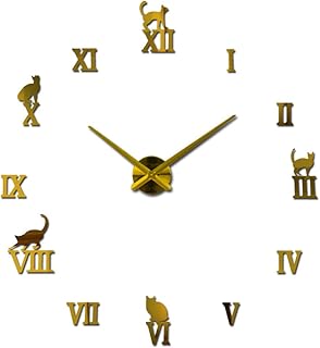 Netmetoo Rome Chaton Horloge Murale DIY 3D sans Cadre Grande Maison Moderne Décoration Autocollant doré