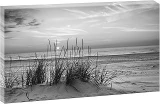 Toile sur toile avec motif paysage coucher de soleil sur la plage de la mer du Nord - 100 x 65 cm - SW - Impression d'art sur toile avec motif plage tendue sur un cadre en bois - 65 x 100 cm