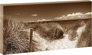 Querfarben Tableau sur toile avec motif paysage de la mer du Nord et plage tendue sur un cadre en bois 80 x 160 cm