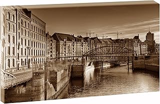 Querfarben Toile sur toile avec motif ville de Hambourg Storadt - 135 x 80 cm - Sépia - Impression d'art sur toile tendue sur un cadre en bois - 80 x 135 cm