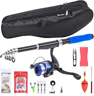 Lixada Télescopique Canne À Pêche, Moulinet De Pêche Combiné Et Spinning Reel Set Baits Crochets Sac De Pêche Kit Attirail De Pêche Set pour Voyage, océan, pêche en Eau Douce ou Eau salée