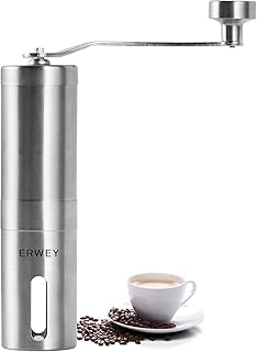 ERWEY Moulin à Café Manuel Inoxydable Moulin à Expresso Réglable Moulin à Grain Café Portable avec Broyeur en Céramique
