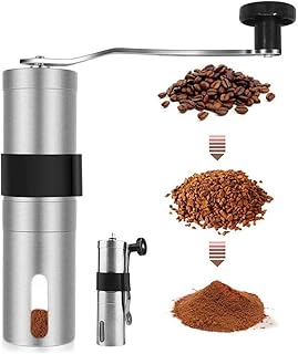 WAOWA Moulin à café manuel | Broyeur conique en céramique | Moulin à expresso manuel en acier inoxydable | Moulin de voyage robuste pour moka, café filtre, porte-filtre