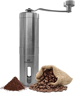 Moulin à café manuel en acier inoxydable de SEVEN SEEDS | Moulin à expresso en acier inoxydable | Broyeur en céramique avec réglage en continu du degré de mouture