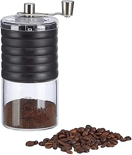 Relaxdays Moulin à café manuel réglable, café expresso, broyeur céramique moulin à main design jusqu’à 3 tasses, noir/Argent
