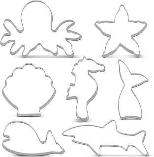 KENIAO Kit de Sirène Emporte-pièces de Créature Marine - 7 Pièces - Queue de Sirène/Queue de Baleine, Hippocampe, Étoiles de Mer, Requin, Baleine, Poulpe et Coquillages - Acier Inoxydable