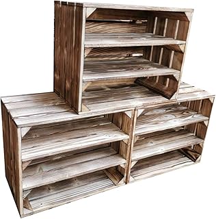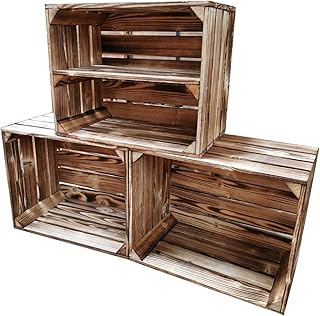 Teramico Lot de 3 caisses en bois 50 x 40 x 30 cm – Look vintage flammé – Cagettes à vin et fruits Set de décoration (Lot de 3, 2 x étagère longue)