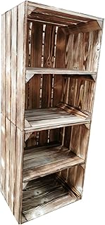 Kistenkolli Lot de 4 cagettes à fruits/vin En bois massif style rétro 50 x 40 x 30 cm Passé au chalumeau