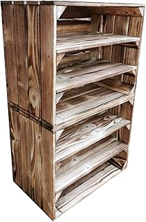 Teramico Caisse en bois 50 x 40 x 30 cm – Look vintage flammé – Cagettes à vin et fruits Set de décoration (boîte individuelle – 2 x étagère longue)