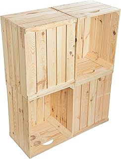 Kistenkolli Lot de 4 cagettes à fruits/vin En bois massif style rétro 50 x 40 x 30 cm Neuf