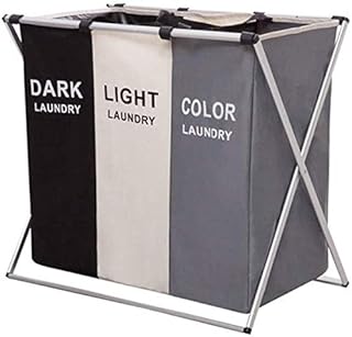 Augmenter Panier à Linge Pliable avec 3 Compartiments Grande Pliable Panier à Linge ,Avec poignée,Amovible