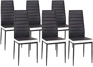 IDMarket - Lot de 6 chaises Romane Noires Bandeau Blanc pour Salle à Manger