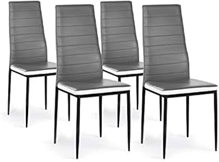 IDMarket - Lot de 4 chaises Mia Grises liseré Blanc pour Salle à Manger