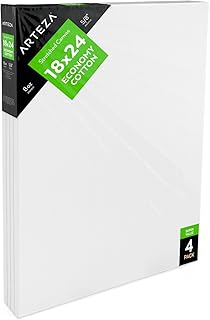 Arteza chassis entoilé blanc de 18x24” Paquet de 4, toiles 100% coton, peinture acrylique, peinture à l'huile et autre art, toiles pour artistes professionnels, peintres amateurs (Classique)