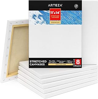 Toile tendue de qualité supérieure Arteza 27,9x35,6 cm, paquet de 8, pré-enduites, 100% coton pour la peinture acrylique, la peinture à l'huile et les techniques d'art humide, toiles pour les artistes