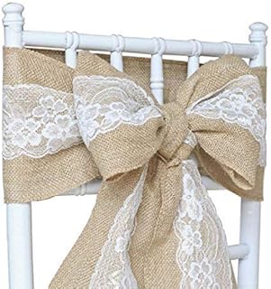 Polka Dot Sky 1/10/25pièces Toile de Jute Lacet Écharpe 17X240cm Housse de Chaise Nœud Naturelle Jute Rustique Vintage Shabby Chic Marriage - Lacet, 1