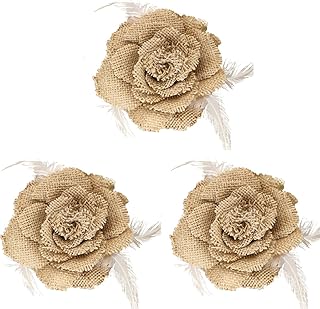 LUOEM Toile de Jute à la Main Dentelle Fleur Toile de Jute Toile de Jute Fleur avec Plume Rustique Bricolage Artisanat et décoration de Noce à la Maison, Paquet de 3