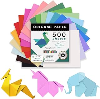 PaperKiddo Papier origami 500 feuilles, 20 couleurs vives en double impression, carré de 6 pouces, facile à plier, papier pour débutants, qualité supérieure pour les arts et lartisanat
