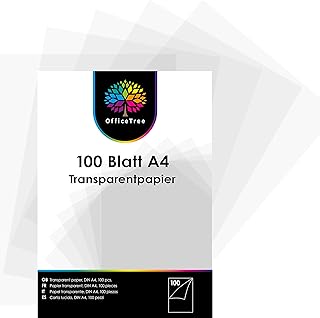 OfficeTree Papier Calque A4 100 Feuilles - 100 g/m² Qualité Premium pour Dessiner, bricoler - Impression Recto-Verso