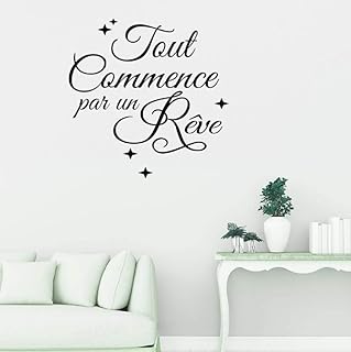 Wall Sticker Tout Commence Par Un Reve Stickers Muraux Décor À La Maison Chambre Salon Français Citation Inspirante Sticker Mural Pour Bureau 42X42 Cm