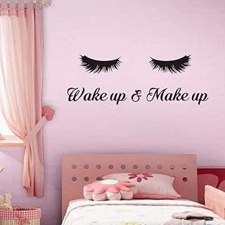 Kairne Cils Sticker mural pour chambre à coucher, Make Up sticker mural, Wake Up Moderne Alphabet, Beauté citation autocollants, Beauty Lady pour salon décoration noir