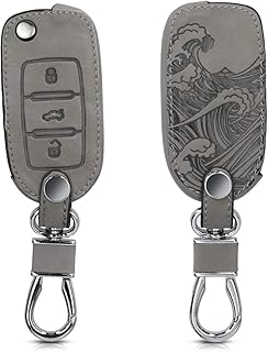kwmobile Accessoire Clef de Voiture Compatible avec VW Skoda Seat 3-Bouton - Coque de Clé de Voiture en Nubuck - Vague Japonaise Gris