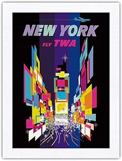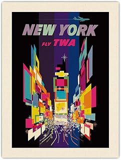 New York - Times Square - Compagnies Aériennes du Monde Trans Volent TWA - Affiche Avion de David Klein - Toile Organique Impression d'art 61x81cm