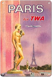 Paris, France - Compagnies Aériennes du Monde Trans Volent TWA - Affiche Avion de David Klein c.1950s Plaque d'art en métal 20 x 30cm