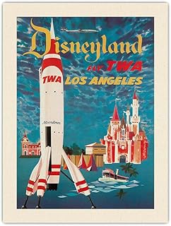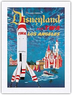 Voler TWA Los Angeles - Compagnies Aériennes du Monde Trans - Tomorrowland TWA Moonliner De Disneyland - Affiche Avion de David Klein c.1955 - Toile Organique Impression d'art 61x81cm