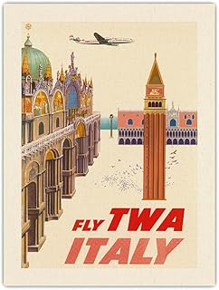 Italie - Piazza San Marco (Saint-Marc De Place) - Les Compagnies Aériennes du Monde Trans Volent TWA - Affiche Avion de David Klein c.1962 - Toile Organique Impression d'art 61x81cm