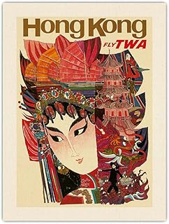 Hong Kong - Compagnies Aériennes du Monde Trans Volent TWA - Affiche Avion de David Klein c.1960s - Toile Organique Impression d'art 61x81cm