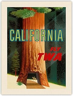 Séquoias De Californie - Trans Compagnies Aériennes du Monde TWA - Affiche Avion de David Klein c.1950s - Toile Organique Impression d'art 61x81cm