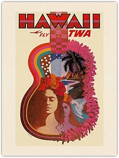 Hawaï - TWA Compagnies Aériennes - Ukulele - Affiche Avion de David Klein c.1960 - Toile Organique Impression d'art 61x81cm