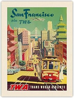 San Francisco, Californie - Trans Compagnies Aériennes du Monde TWA - Affiche Avion de David Klein c.1950s - Toile Organique Impression d'art 61x81cm