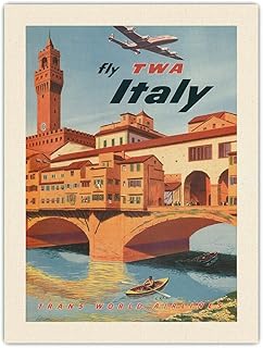 Italie - Compagnies Aériennes du Monde Trans Volent TWA - Affiche Avion de Frank Lacano c.1950s - Toile Organique Impression d'art 61x81cm