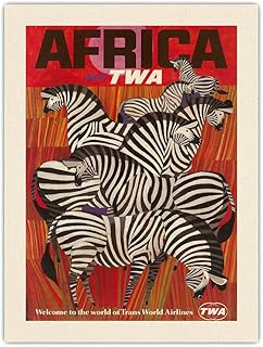 Afrique - Compagnies Aériennes du Monde Trans TWA De Mouche - Zèbres - Affiche Avion de David Klein c.1960s - Toile Organique Impression d'art 61x81cm