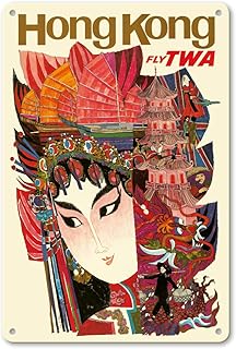 Hong Kong - Compagnies Aériennes du Monde Trans Volent TWA - Affiche Avion de David Klein c.1960s Plaque d'art en métal 20 x 30cm
