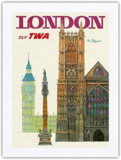 London UK - Compagnies Aériennes du Monde Trans Volent TWA - Abbaye De Westminster Église - Affiche Avion de David Klein c.1960s - Toile Organique Impression d'art 61x81cm