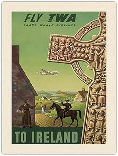 À L'irlande - Croix Celtique - Compagnies Aériennes du Monde Trans Volent TWA - Affiche Avion de S. Greco c.1950s - Toile Organique Impression d'art 61x81cm